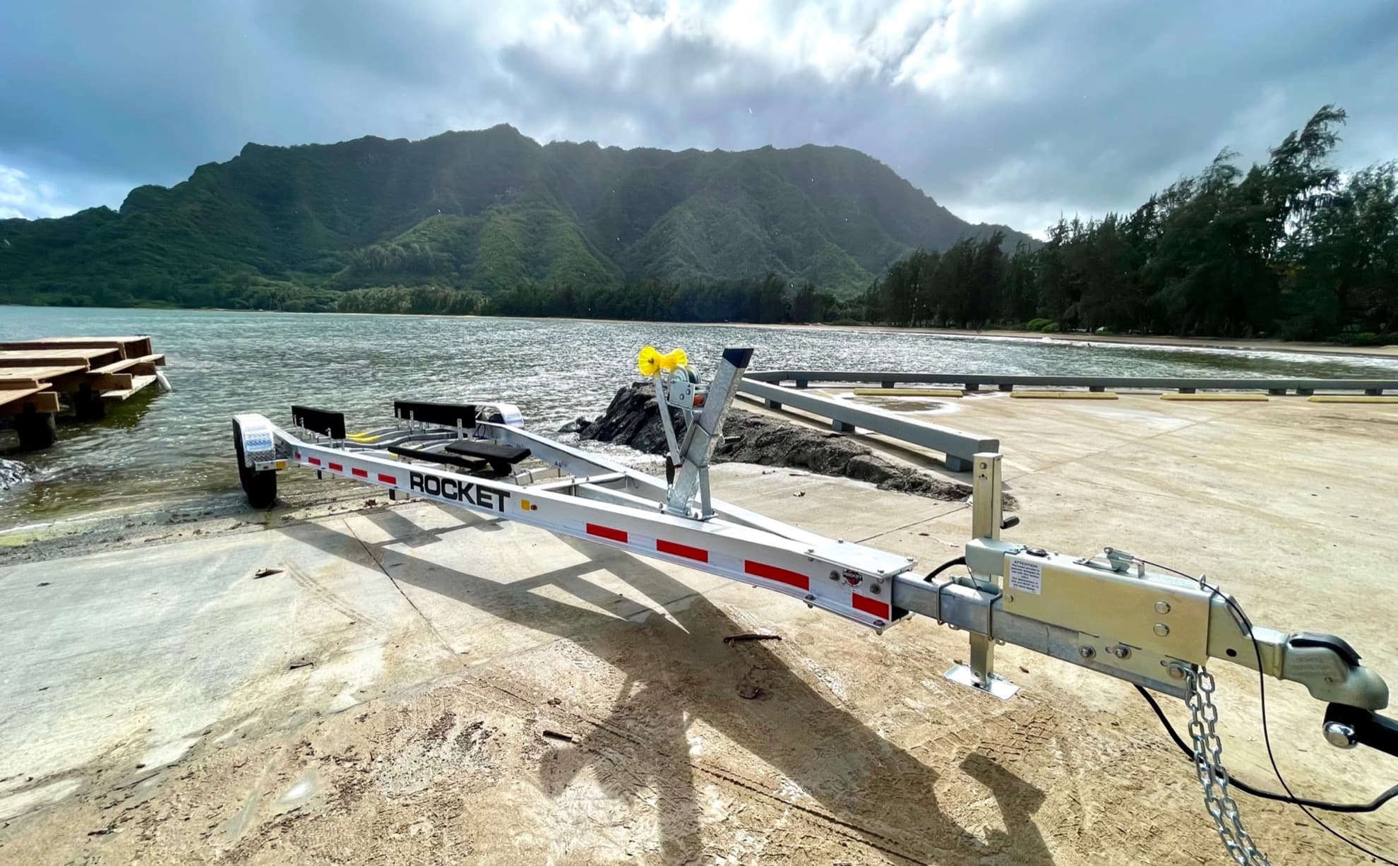 Triton two-place Personal Watercraft Trailers are Hawaii's number choice one when it comes to purchasing a dependable, long lasting trailer. The all aluminum welded frame construction fits most one, two and three-seat watercraft models. Standard features include custom aluminum extruded frame engineered for years of loading and unloading, stainless steel hardware, sealed LED lights, infinite slide adjustable bunks, torsion or spring axles. From fishing to tow surfing, these trailers lead the way in fun, dependability and ruggedness.